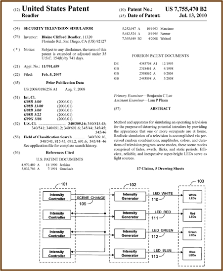 A manufacturer based out of Minneapolis -- Hydreon Corp. -- liked the idea, and designed a product around the concept. Thus was born the FakeTV (now available in three models). In 2014 I sold the rights to the inventions to Hydreon for a modest percentage of the sales.